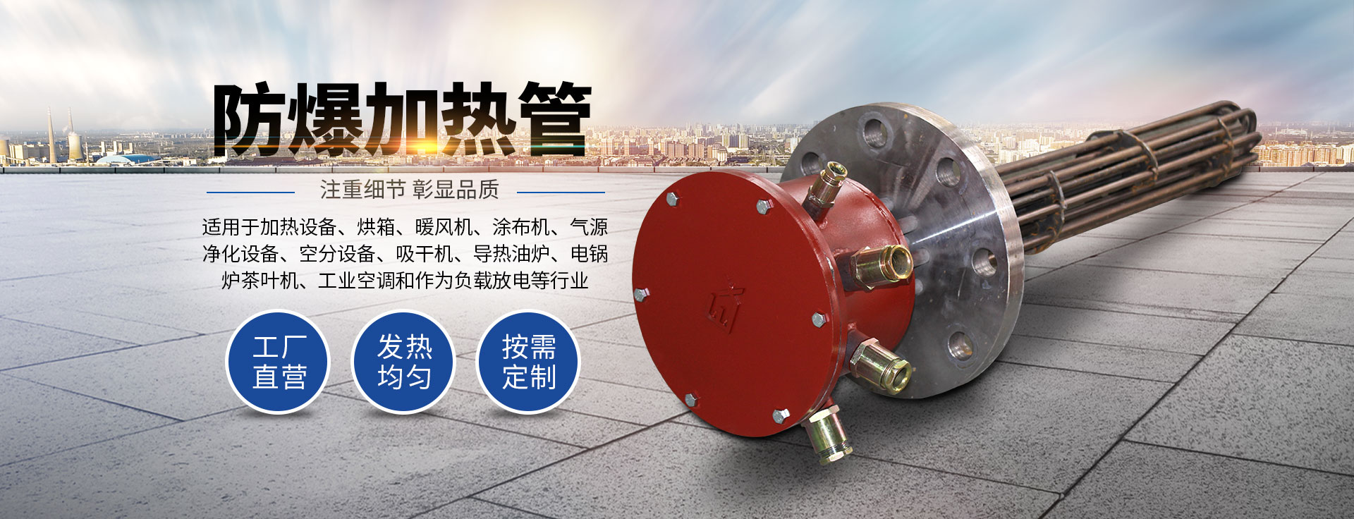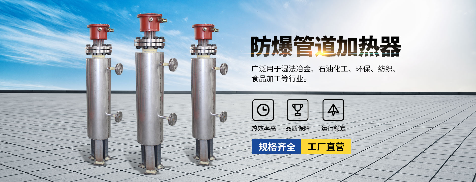 公司主要经营:电加热设备、化纤清洗设备、橡塑机械、涂装机械、化纤机械设备、烘干设备、环保设备、电热电器。主要产品有:导热油炉,烘箱,隧道炉,料仓,搅拌罐和电热管等。